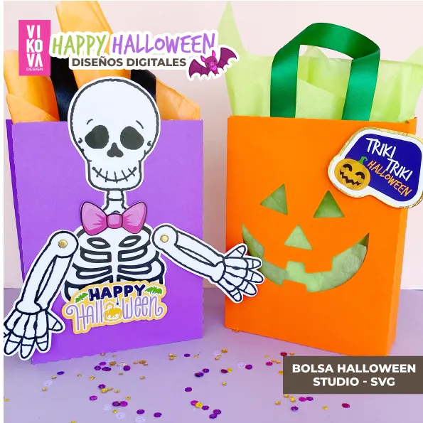 • 2 bolsas de esqueleto y calabaza para dulces para cameo