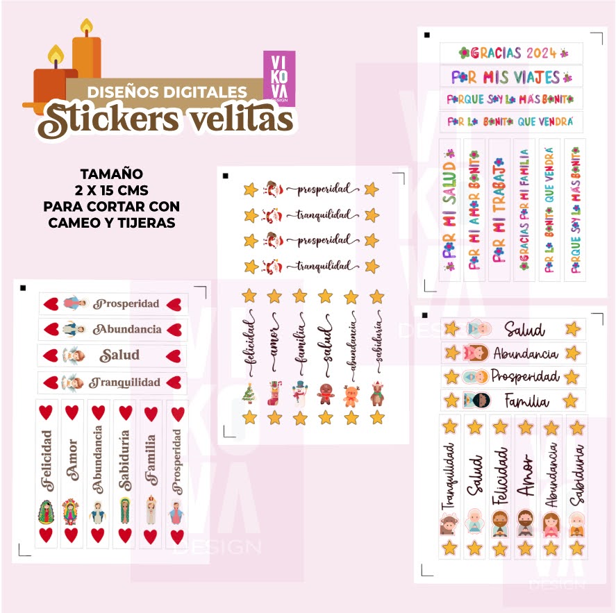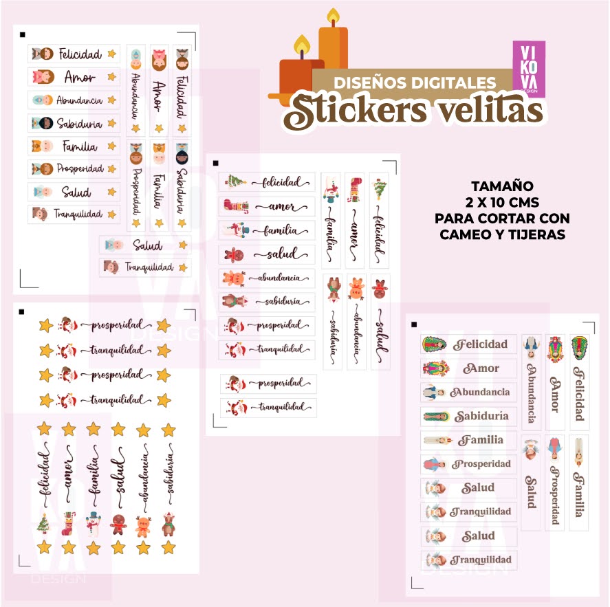 Plantilla de stickers para velas – Diseños de Papelería creativa
