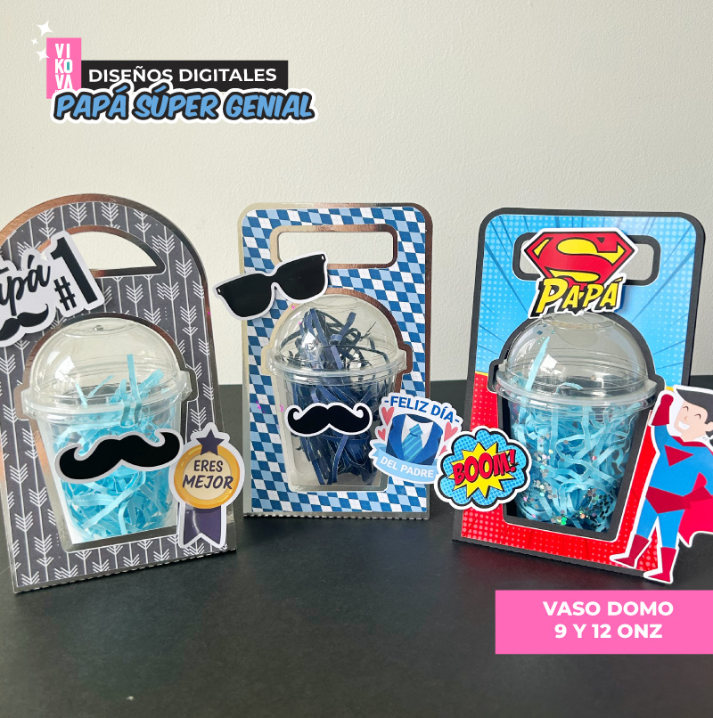 🌸 ¿Qué incluye nuestro kit de plantillas para vasos domo papá super genial?